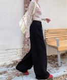 リラックス感のあるワイドシルエットと、ウエストのドローストリングデザインが特徴のカジュアルボトムスです