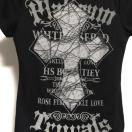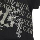 前には 英字 プリント と 十字架 の 刺繍 が施されております。