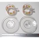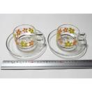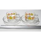 昭和レトロ 花柄 ティーカップ&ソーサー 2客 セット カップアンドソーサー グラス ガラス オレンジ 黄色 レトロポップ