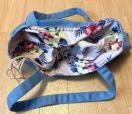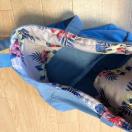 サイズは平置きで、縦約全長36(巾着部15.、本体21)、横約39、マチ約11.5、持ち手49.5cmです。
