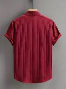メンズカジュアル半袖ボタンアップシャツ - ブラック縦ストライプポリエステル生地、ノーストレッチ、夏のリゾートウェア、軽量&通気性のある屋外レジャー用、カジュアルスタイルシャツ|軽量ファブリック