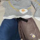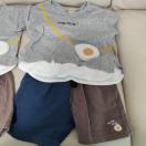 - デザイン: 卵のプリント付きTシャツとショートパンツのセット