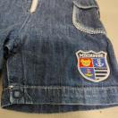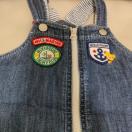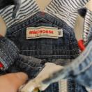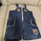 デニム素材のMiki House製オーバーオール、動物の刺繍とジッパー付きで使いやすいデザイン。