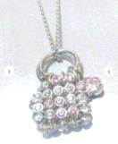 キラキラ煌めくラインストーンで飾られた、編み込みバッグのような綺麗なトップが素敵なネックレスです。