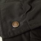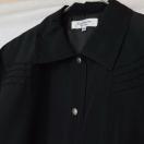 ブラックジャケット、リブ付き袖とサイドポケットが特徴。
