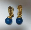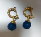 彫金風のつや消しのゴールドと1cmくらいのエメラルドグリーンビーズのイヤリング