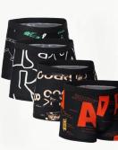 4枚セットの男性用ボクサーブリーフ - 通気性、伸縮性、グラフィックプリントが全体に施されたショーツ、運動用衣類、運動用衣類|ボールドプリントボクサー|伸縮性のある素材