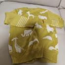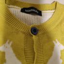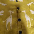 キリンと鳥の柄が特徴的なイエローカーディガン。