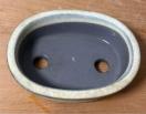 排水用の穴が2つある楕円形の陶器製ソーサー。