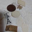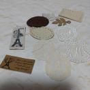 多様なデザインの手芸用モチーフ11点セット、エッフェル塔や葉の形状が特徴。