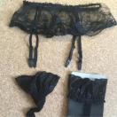 フリル状のレースがついたガーターベルトと、網ストッキングのセットです。