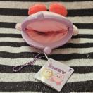 薄紫のがま口が付いた、すやすやとお休みカービィぬいぐるみ。