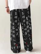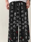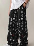メンズカジュアルルーズワイドレッグドローストリングウエストパンツ、古代中国文字プリント、春/夏/秋アウトドアカジュアルウェア
