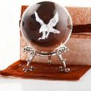 彫刻イーグルクリスタルボール文鎮スタンド付き 60 ミリメートル