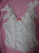 肩にBiGなリボン結び可憐〜胸元の幅広いフリフリしたレ-スが可愛い〜コ針金入りで、コルセット風な形でBALANCe良いデザインが魅力的〜縦に鍵編みレ-ス付き更に可愛さup〜裾お花レスも可愛い〜首の後ろリボン巻きにし固定しリボンを真ん中に結んでも2通りデザインで更に可愛さup〜今流行の素材&キラキララメ付きが華やか嬉しいですね(*^^*)締切日時