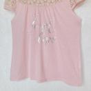 キャプスリーブと首まわりのレースが可愛いカットソーです。