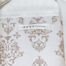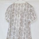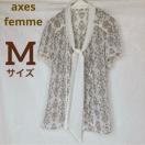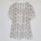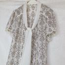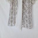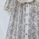 アンティークな総柄と透け感のあるオフホワイトのリボンタイ付きブラウス、シャツです。