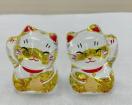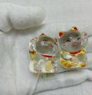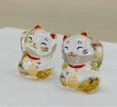 クリスタル ガラス製 招き猫 【左手 右手】新品、未使用品です。