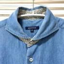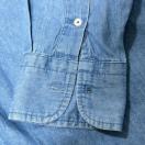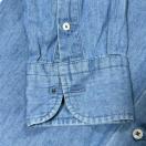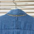 襟元と裾からチラッとのぞく花柄が可愛いシャンブレーシャツです。