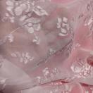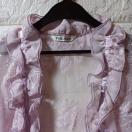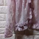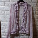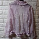 衿周りと裾にかけて共布でフリル。バラ柄のシースルーシフォンボレロ。