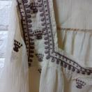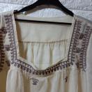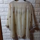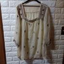 スクエアな衿、シフォン素材の刺繍付シースルーチュニック。