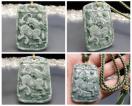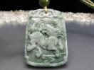 濃い目ひすい良質天然石本翡翠麒麟(麒麟)ほり 石サイズ縦約48.7mm 横約33.5mm 厚さ約6mm