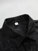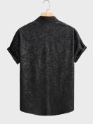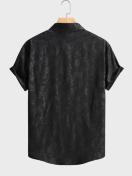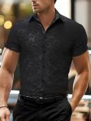 メンズカジュアルサマーフローラルプリント半袖シャツ - ブラックにホワイトフローラルデザイン、伸縮性なしの素材、レギュラーフィット、ラペルカラー、成人向けに完璧なカジュアルアウトフィット|フローラルプリントシャツ|半袖シャツ