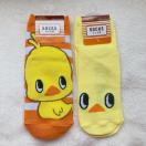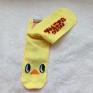 チキンラーメンのキャラクターひよこちゃんデザインのカラフルなショート丈のくつした、靴下。スニーカーソックス、サイズ22-25cm。