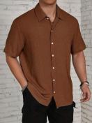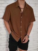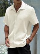 メンズカジュアル半袖シャツ - ライトイエローのボタンアップ襟、通気性のある生地、洗濯機可、レギュラーフィットでオールシーズン着用可能、カジュアル&セミフォーマルな服装に多用途