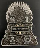 - デザイン: 消防士が剣の玉座に座っている
