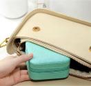旅行にも最適なジュエリーボックスは、小さな仕切りが多く、イヤリングやリング、ネックレスなどのアクセサリーを整理して収納できます。さらに、クッション性のある素材を使用しているため、アクセサリーが傷つく心配もありません。