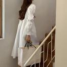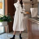 ボリューム袖ワンピ/ロングシャツ長袖秋/膝丈ワンピース大人