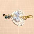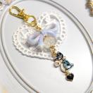 ハンドメイド☆キーホルダー☆モチーフレース☆猫チャーム☆ブルーリボン