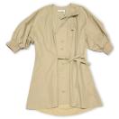 クロエ(chloe)らしい上品さと実用性を兼ね備えた、ベージュカラーのシャツワンピース。フロントボタンとサイドリボンで構成されたラップ風デザインが、シンプルながらも洗練された印象を演出します。首元のリボンディテールやふんわりとした7分袖が、女性らしさをさりげなく引き立てるポイント。ウエストのサイドリボンでシルエット調整もでき、体型カバーにも◎。フロントは軽やかなコットン素材、背面には贅沢なシルク100%生地を使用し、動くたびにしなやかな光沢感が漂います。春・秋の軽やかな装いに、1枚でさらりと着こなせる万能アイテムとして、デイリーから通勤スタイルまで幅広く活躍します。