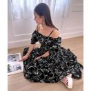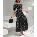 アイテム名:ラインフラワー柄マキシワンピース