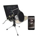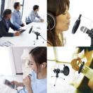 三脚スタンド付きですので、机に置いて使用していただけますし、マイクスタンドからの振動衝撃を吸収して、安定した音が取れます