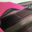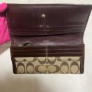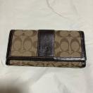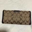 コーチの定番シグネチャー柄の長財布。レザーとキャンバスの使い方がお洒落で、上品なコーチのスタンダードなウォレットです。