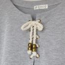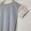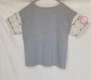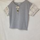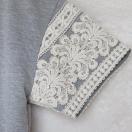 レース付きのグレー半袖Tシャツ、カジュアルスタイルに最適。