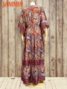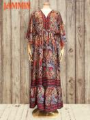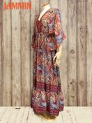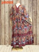 ざっくりした造りで、可愛いシルエットのアジアンペーズリー柄ロングワンピです。
