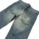 しっかりしたデニム素材で、所々ダメージ加工が施されています。