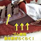 ★ほどけないゴム紐とサイドゴア仕様で脱ぎ履きもカンタン。