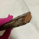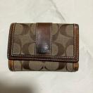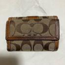 コーチの定番シグネチャー柄のお財布。レザーとキャンバスの使い方がお洒落で、上品なコーチのスタンダードなウォレットです。