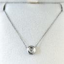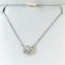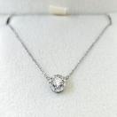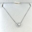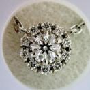 センターのダイヤモンドの周りをフラワーリースのようなメレダイヤモンドで縁取った、存在感のある輝きが魅力のネックレス。