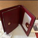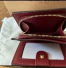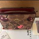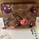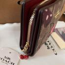 チェリー柄のデザインとゴールドロゴが特徴の二つ折り財布