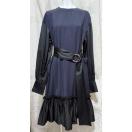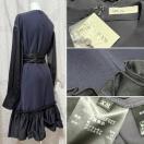 新品アディアムADEAM 長袖フリルワンピース紺#XS
