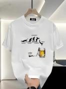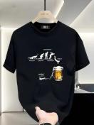 メンズブラックコットングラフィックTシャツ - ルーズフィット、ショートスリーブ、カジュアルな夏のTシャツ、ユニークなビールボトル&ヒト進化プリント、軽量で通気性のあるカジュアルなアットワード