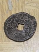 大黒様が描かれた福神類と分類されます。裏にも小さな像?が描かれてます。縁の裁断が余った状態。珍銭の類と思います。締切日時