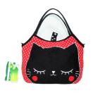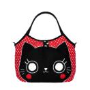 黒猫の顔が可愛く、サイドにⅮカンつけてるのでショルダー対応(ショルダー紐は付属してません)、赤地に白ドット柄もかわいい特大サイズのグラニーバッグです。