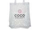 シャネルが期間限定イベント「ココ ゲームセンター」を開催した際のノベルティ トートバッグです。ビニール製の透明バッグには、レトロなゲーム機を再現した四角ドットのピンクココマーク。そして、COCO GAME CENTER と、ロシア語で"エンターテイメントスペース"を意味する文字がデザインされています。クリアバッグは、涼しげな透明感と優れた防水機能が魅力。 特に夏場、プール、ビーチ、アウトドアシーンに活躍します。