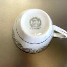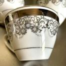 ホワイトとシルバーの花柄デザインの陶器製ティーカップ3個セット。